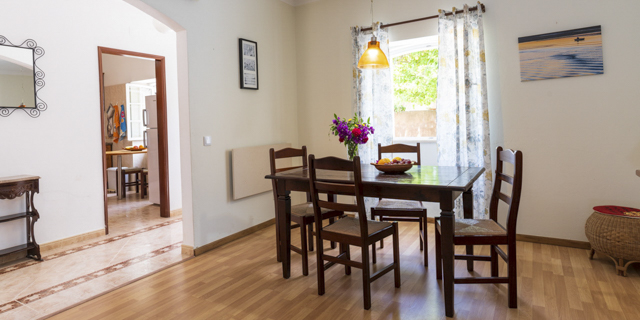 The “Casa Otilia” holiday home is a typical Portuguese house – a long corridor leads from the entrance through to the large patio. The bedrooms are on the right and on the left hand sides with the living and dining area and the large kitchen right ahead, as well as two other bedrooms. The bathroom is in the middle.
